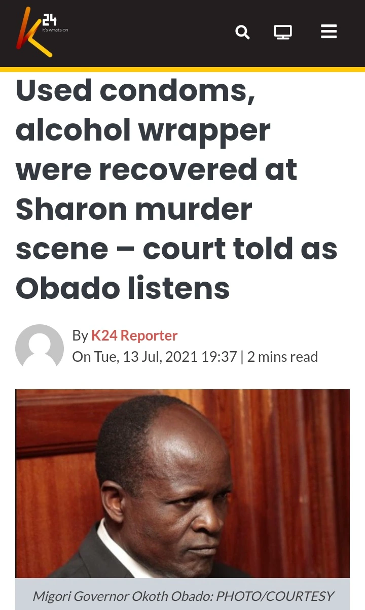 Breaking Kenya News Officer Tells Of Condoms At Sharon Otieno S Murder Scene An Officer Attached To The Special Crimes Unit Recreated The Last Moments Of Migori Governor Okoth Obado S Girlfriend Sharon