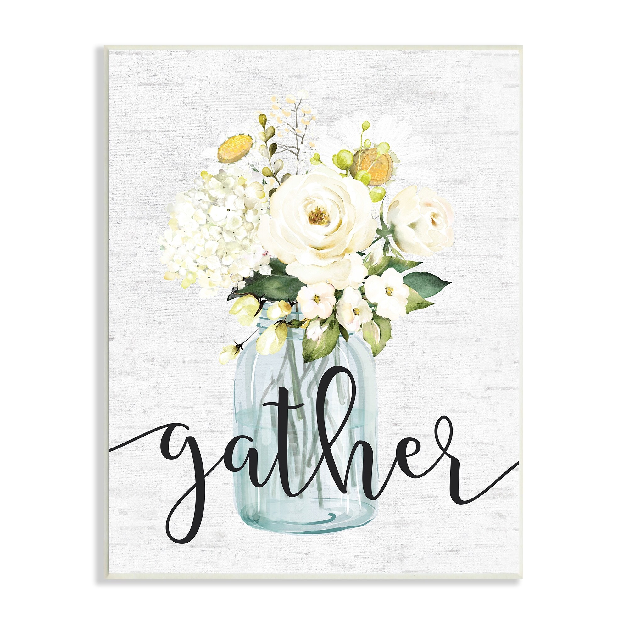 Stupell Industries Gather Phrase White Spring Bouquet Homey Sentiment Wood Wall Art Overstock 34530715